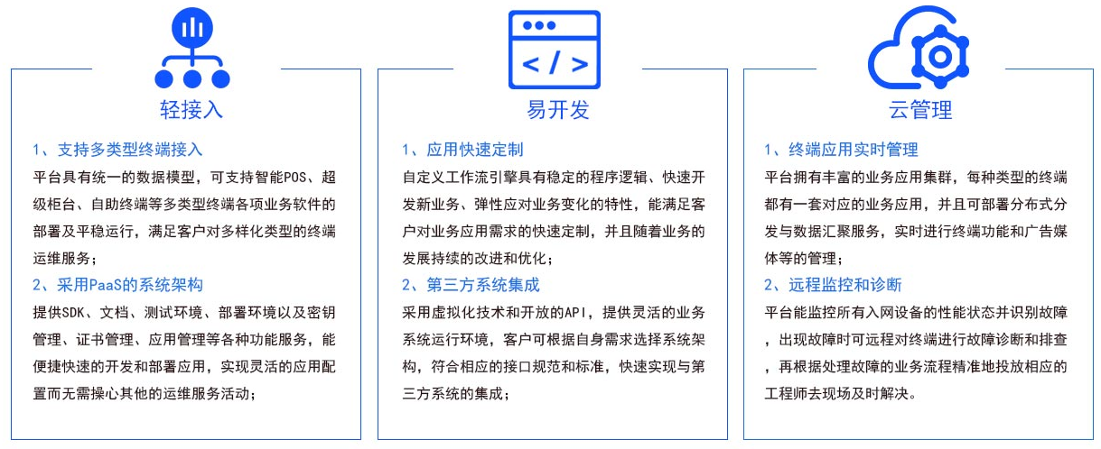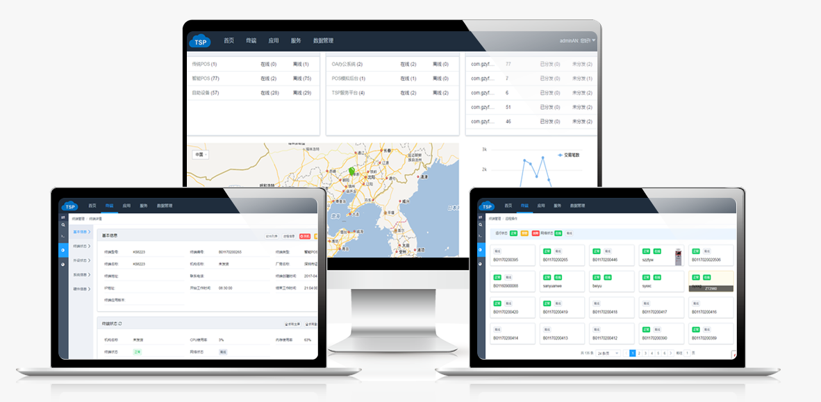 交易統計、終端地圖、應用管理、智能監控……功能按需定制,操作一目了然